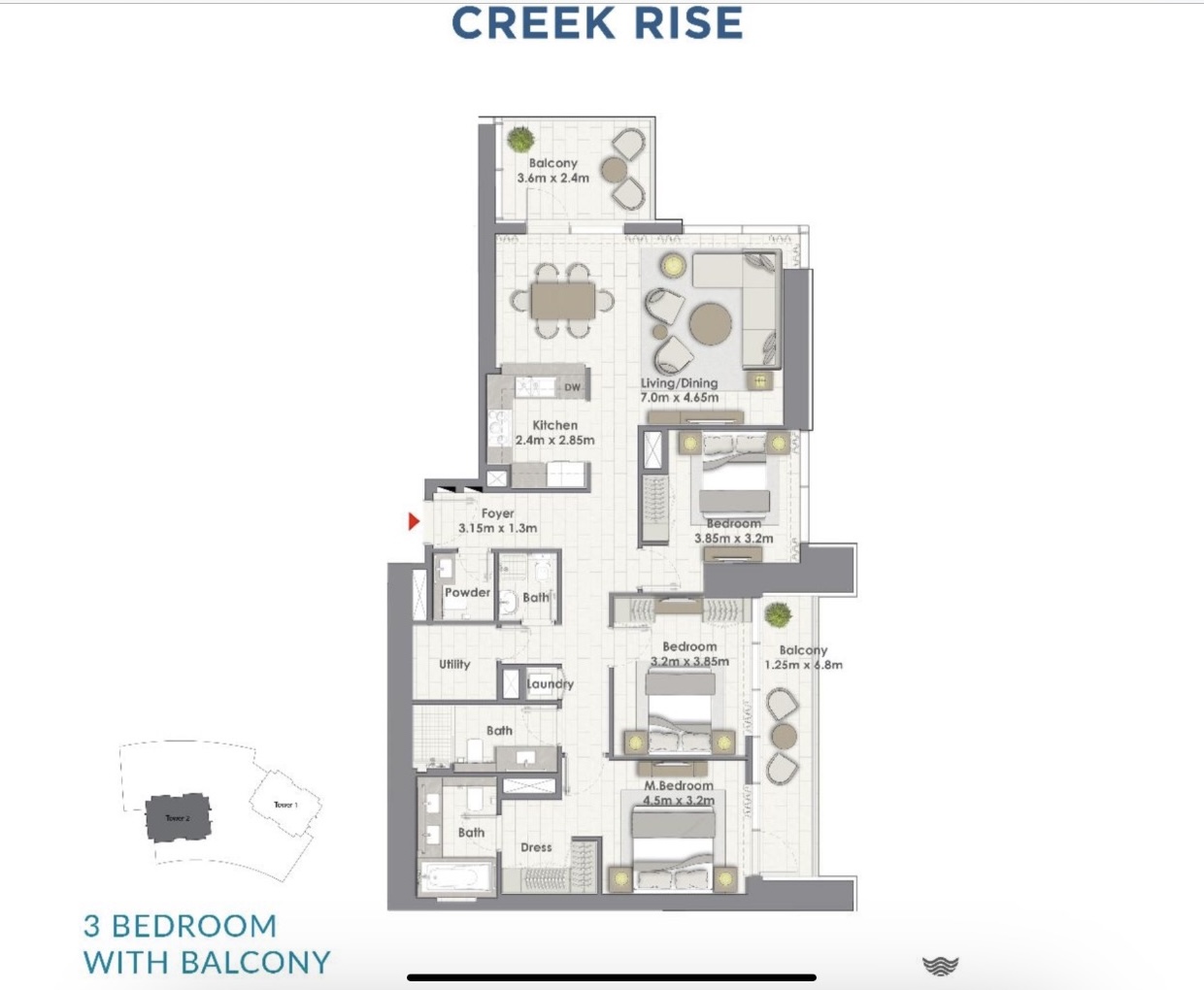Creek Rise comprises two beautifully designed residential high-rises with unparalleled views overlooking Creek Island’s lush parkland. Set in a family-oriented neighborhood, its one, two, and three-bedroom apartments range from 72 to 152 square meters of sheer elegance.